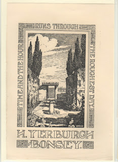 Several weeks ago I spotted an E Bay listing for eight bookplates designed by Ernest W. Oldham, an English designer I had never heard of.. The seller, Mr. Bernard Maker also sold me an additional twenty four duplicates from his own collection. All thirty two will be scanned and listed throughout the week .Mr. Maker and fellow collector Anthony Pincott have been most generous in sending biographical information and checklists of the approximately 200 bookplates Mr. Oldham designed ..The ciphers and signatures for the bookplates will also be scanned.